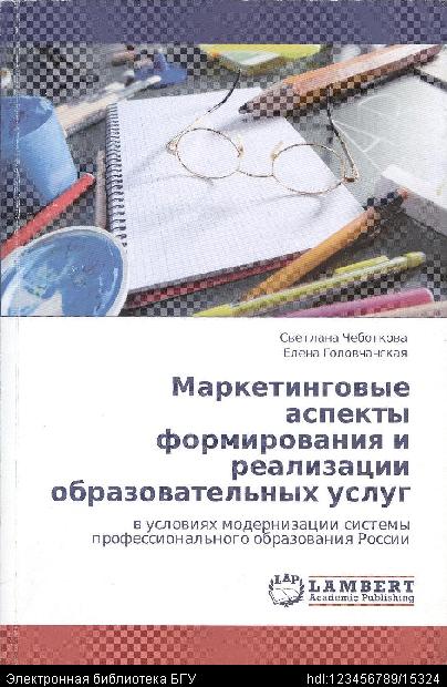 | Заглавие документа: | Маркетинговые аспекты формирования и реализации образовательных услуг. Монография // LAP LAMBERT Academic Publishing GmbH & Co.KG Dudweiler Landstr. 99, 66123 Saarbrucken,Deutschland – 2011,182p. |