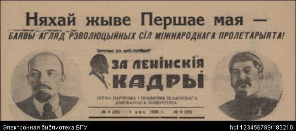 | Заглавие документа: | За ленінскія кадры : орган парткома і прафкома Беларускага дзяржаўнага універсітэтаа. - Менск : Друкарня "Звязды". - 1936, №8 (20) (1 мая). - 1000 экз. |