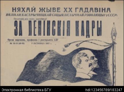 | Заглавие документа: | За ленінскія кадры : орган парткома, прафкома і рэктарыята Беларускага дзяржаўнага універсітэта. - Менск : Друкарня "Звязды". - 1937, №18-19 (48-49) (7 лістапада). - 1000 экз. |