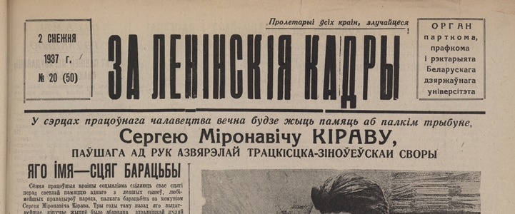 | Заглавие документа: | За ленінскія кадры : орган парткома, прафкома і рэктарыята Беларускага дзяржаўнага універсітэта. - Менск : Друкарня "Звязды". - 1937, №20 (50) (2 снежня). - 1000 экз. |