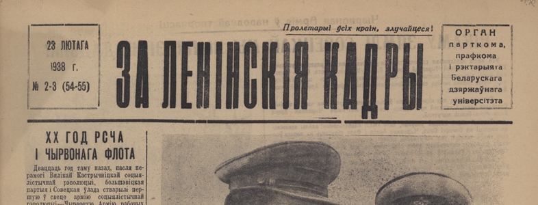| Title: | За ленінскія кадры : орган парткома, прафкома і рэктарыята Беларускага дзяржаўнага універсітэта. - Менск : Друкарня "Звязды". - 1938, №2-3 (54-55) (23 лютага). - 1000 экз. |