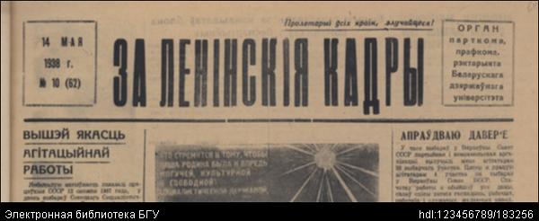 | Заглавие документа: | За ленінскія кадры : орган парткома, прафкома, рэктарыята Беларускага дзяржаўнага універсітэта. - Менск : Друкарня "Звязды". - 1938, №10 (62) (14 мая) |