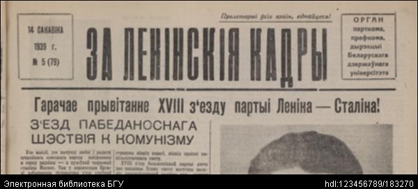 | Заглавие документа: | За ленінскія кадры : орган парткома, прафкома, дырэкцыі Беларускага дзяржаўнага універсітэта. - Менск : Друкарня "Звязды". - 1939, №5 (79) (14 сакавіка). - 1500 экз. |
