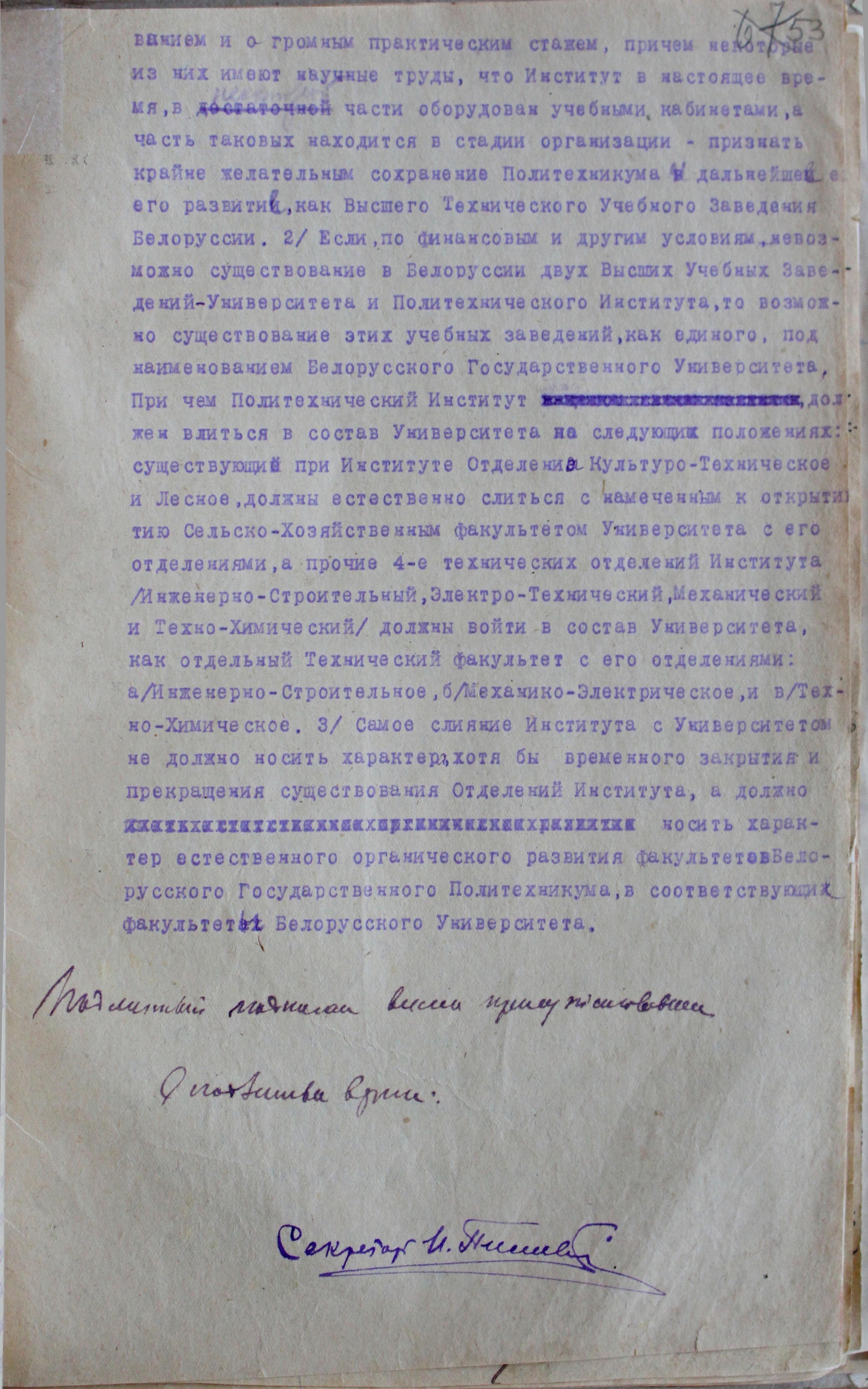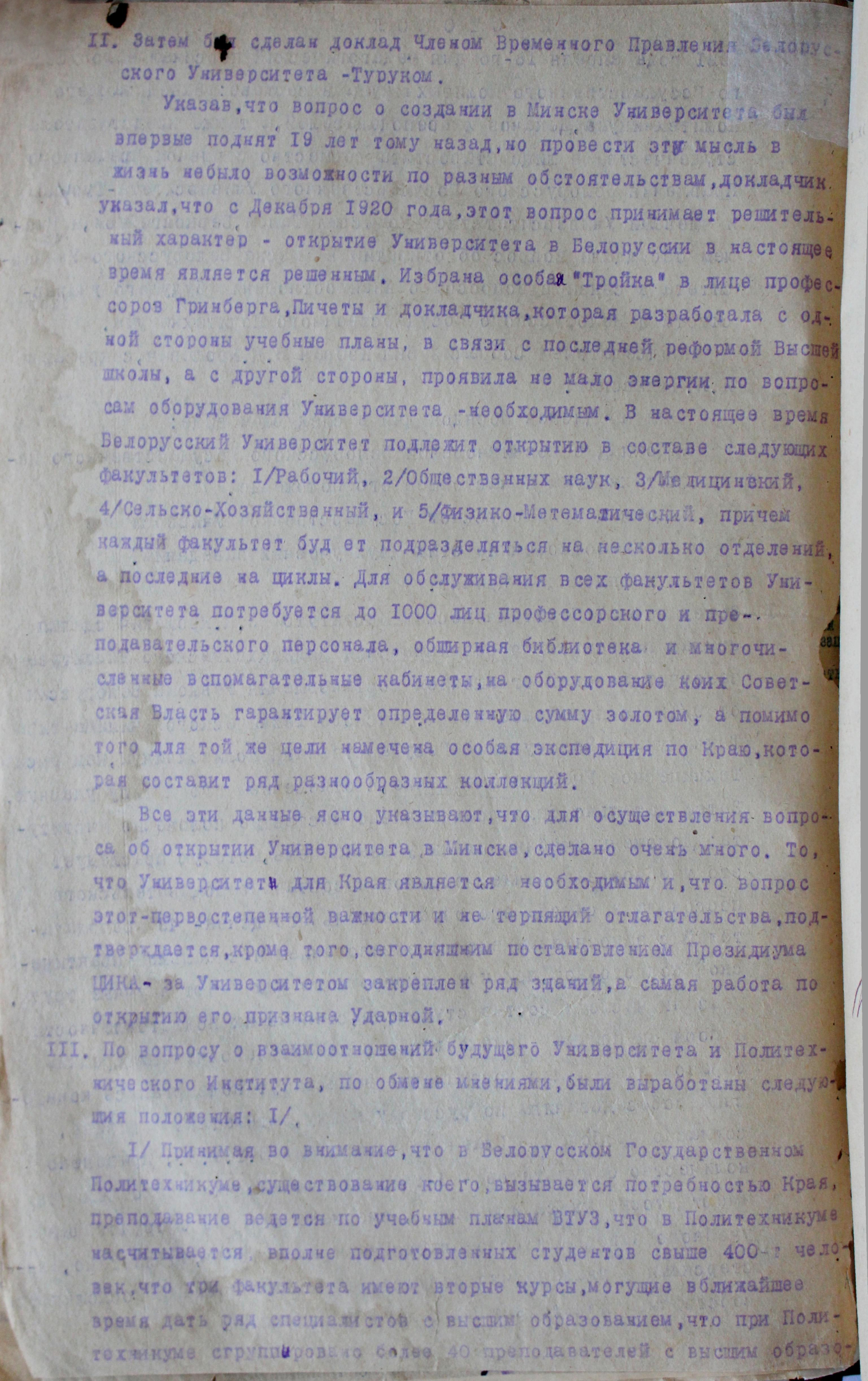 Тема: | о взаимодействии Белорусского Политехникума и создающегося университета |