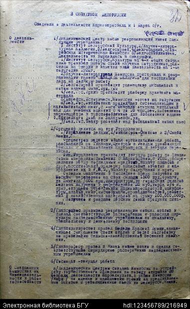| Заглавие документа: | Сведения о деятельности Наркомпросбела к 1 марта с/г [1922] |