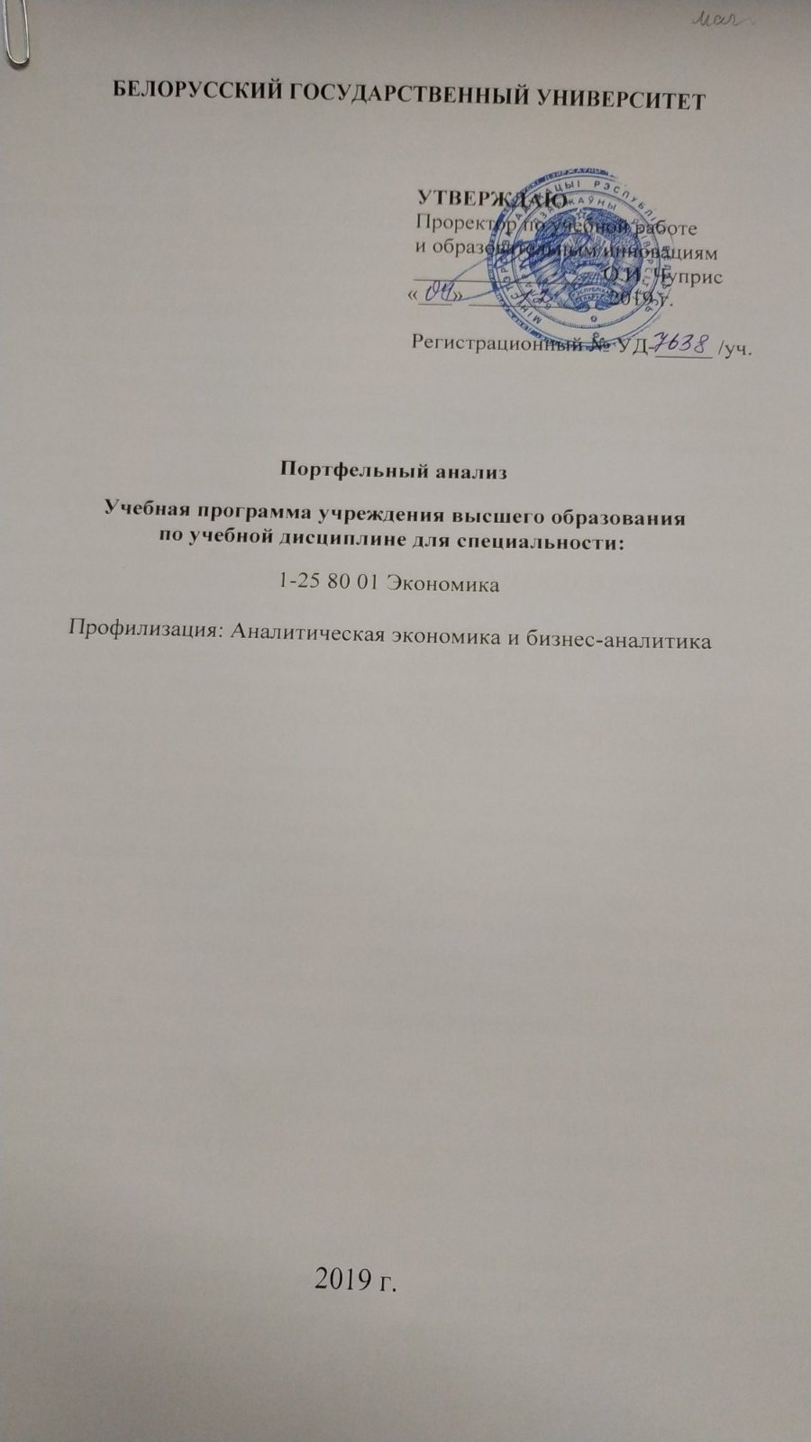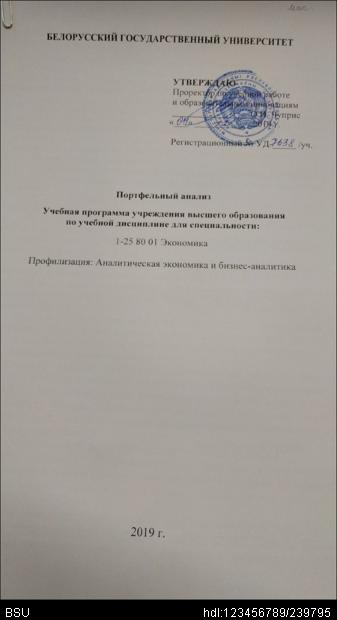 Заглавие документа: | Портфельный анализ: Учебная программа учреждения высшего образования по учебной дисциплине для специальности: 1-25 80 01 Экономика, Профилизация: Аналитическая экономика и бизнес-аналитика, № УД-7638 |