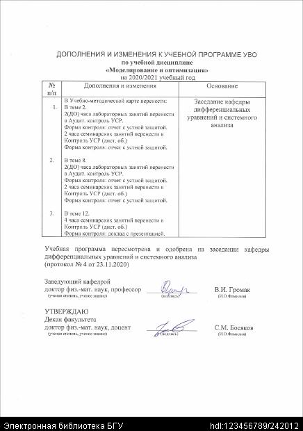 | Title: | Моделирование и оптимизация. Учебная программа УВО по учебной дисциплине для специальности 1-31 80 03 Математика и компьютерные науки, профилизация «Компьютерная математика и системный анализ». № УД-7918/уч. |