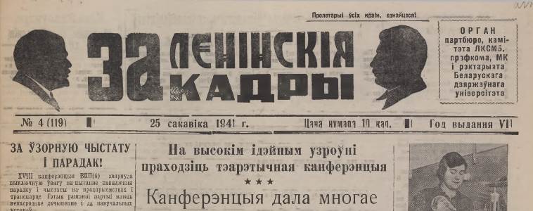 | Заглавие документа: | За ленінскія кадры : орган партбюро, камітэта ЛКСМБ, прафкома, МК і рэктарыята Беларускага дзяржаўнага універсітэта. - Мінск : Друкарня "Звязды". - 1941, №4 (119) (25 сакавіка). - 500 экз. |